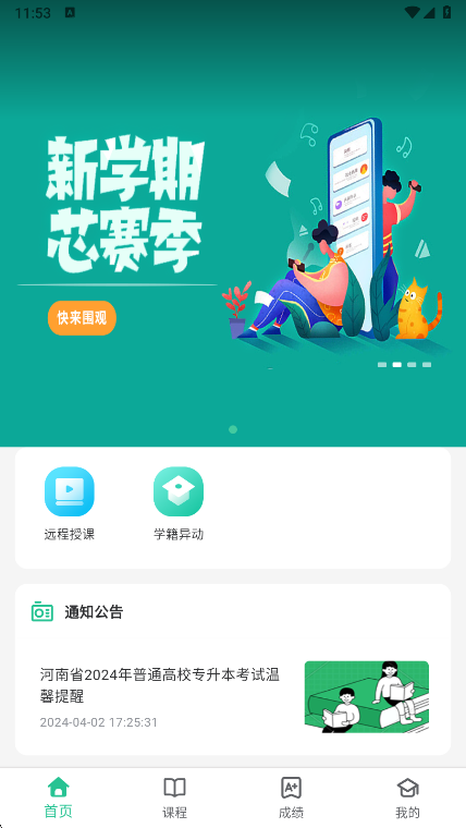 1、在本站下载安装联大学堂app打开,进入到首页可以浏览到基础公告