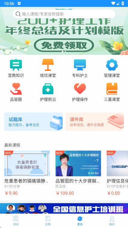 3、在规培课堂中,还可以浏览到各类的课程信息