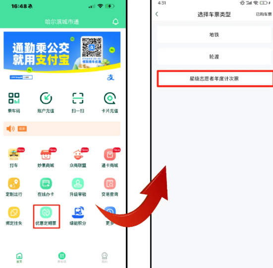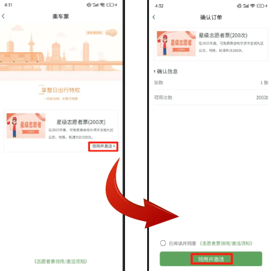 注册并认定为四星、五星级的我市志愿者,每年免费乘坐哈尔滨市主城九区公交、地铁、轮渡、智轨共计 400次,此功能自2023年10月20日起。