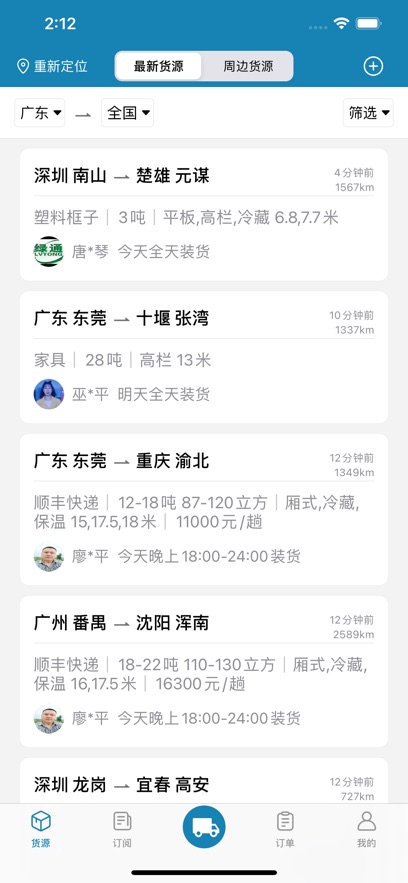 3、可以查看线上司机,了解司机的历史运输路线,找到满意的司机。
