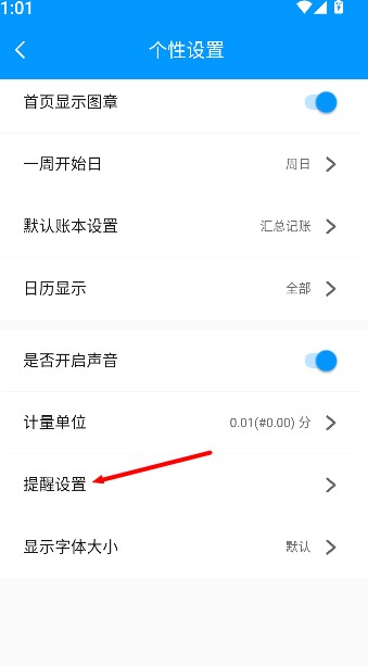 3、进入个性设置后,打开提醒设置即可完成操作。