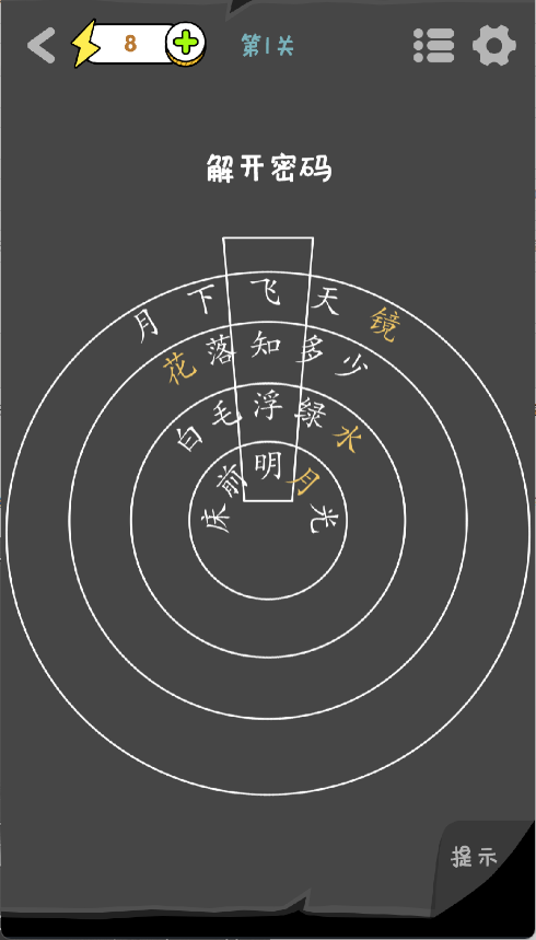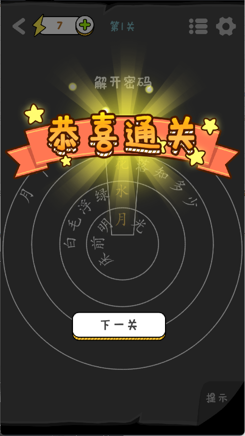 3、进入关卡后,根据提示分析汉字组合、笔画或读音规律,推理出正确的密码或答案。