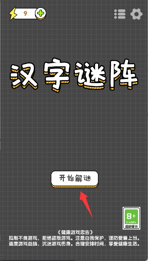 2、进入主界面后点击“开始挑战”按钮,即可准备进入谜题选择与难度配置环节。