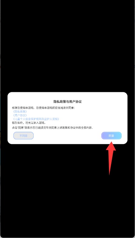 1、启动游戏后,请先仔细阅读并勾选同意用户协议与隐私政策,完成初始设置。
