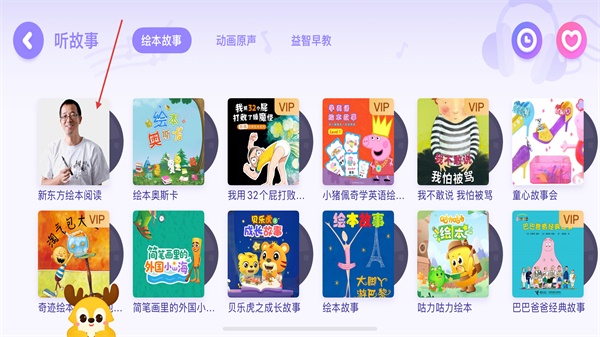 1、打开爱奇艺动画屋,在首页顶部导航栏中点击听故事选项,进入听故事专区。