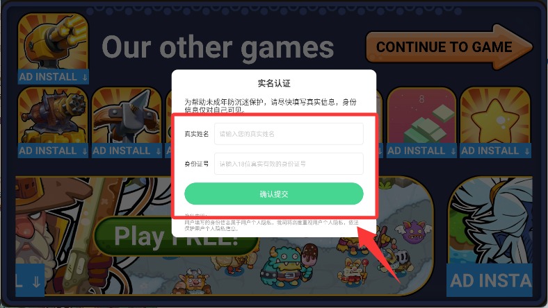 1、启动游戏后,在主界面找到“实名认证”入口,点击进入身份信息登记页面。