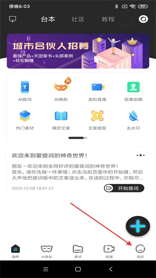 1、打开提词器爱提词App,在创作页面点击AI换装选项。