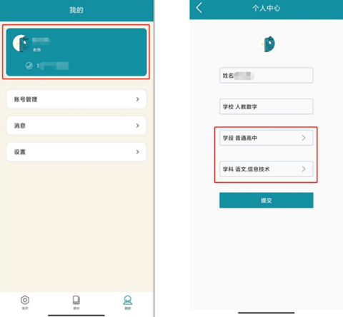 系统支持学段、学科信息的修改,姓名、学校信息不支持用户个人修改。点击【提交】,即完成用户个人信息的修改。