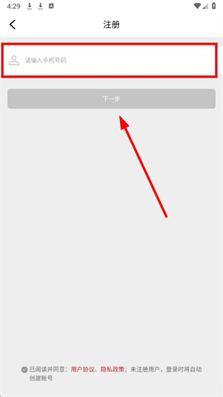 4、在输入框中填写手机号,点击下一步,后续按页面提示完成注册。
