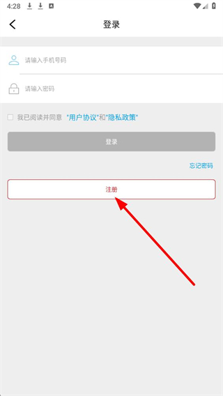 3、在登录页面,点击下方注册选项按钮,进入注册界面。