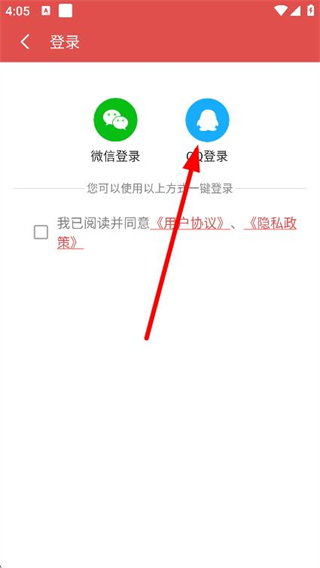 3、在登录页面,选择并点击右侧的QQ登录选项。