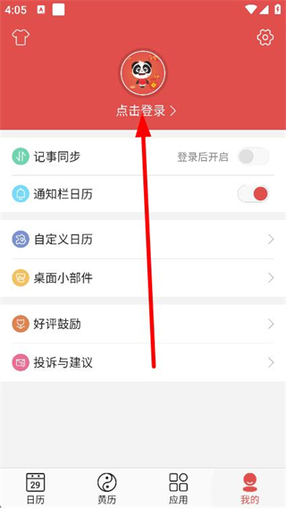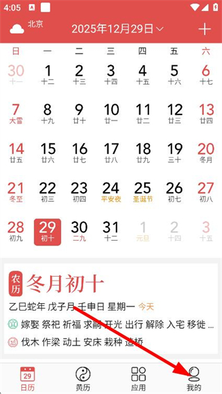 1、打开吉星万年历App,点击页面底部的我的选项。