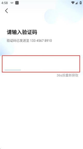 4、进入请输入验证码页面,在对应输入框中填写发送至该手机号的验证码。