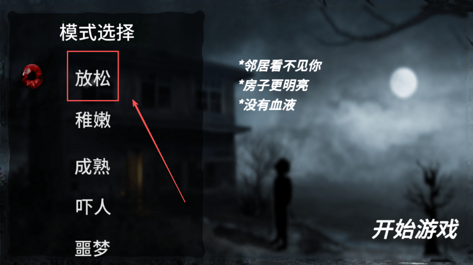 2、在游戏主界面认真找到开始选项并点击红色框框标记的区域,进入正式关卡开始面对爷爷奶奶的追踪。