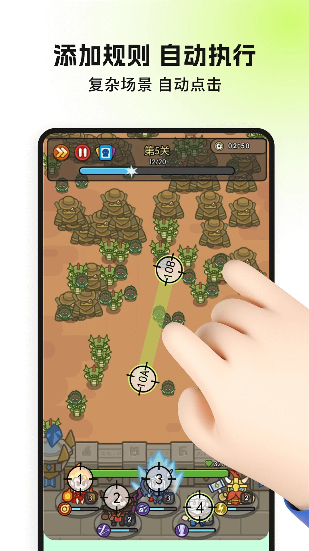 1、手势动作模拟:完美复刻滑动、长按、双击等复杂手势,还原真实人工操作逻辑。