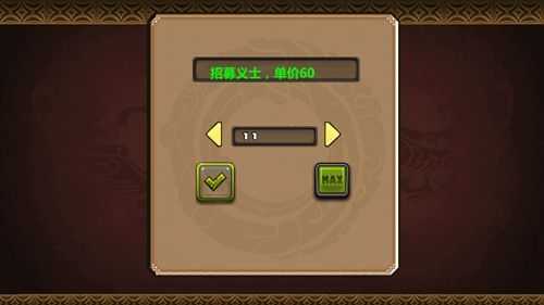 11、招募士兵是需要钱的,大家量力而行,前期招收30个士兵即可,刚好前中后三个阵型每个阵型10个士兵。