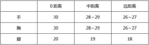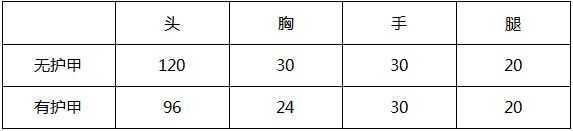 胸部伤害x4即为头部伤害,打中护甲的伤害须在此基础上另外x0.8 。