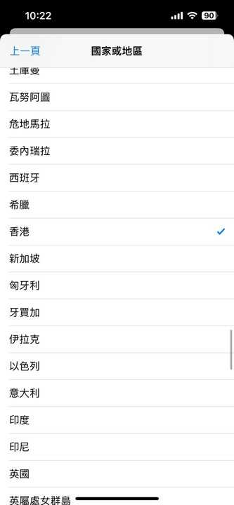 4、然后我们可以选择任意的国家或者地区,这里我们以中国香港为例子,我们点击香港。