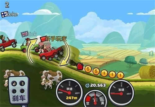 1、游戏的操作方式是非常的简单的,屏幕右下角的虚拟按键是油门,可以通过按压程度的不同,来给车子进行加速;屏幕左下方角的虚拟按键是刹车,可以对车子进行减速。这个按键还有一个非常大的功能,就是在我们的车子快要翻车的时候,松开油门,点击刹车,就可以矫正我们的车子,使车子不会翻。