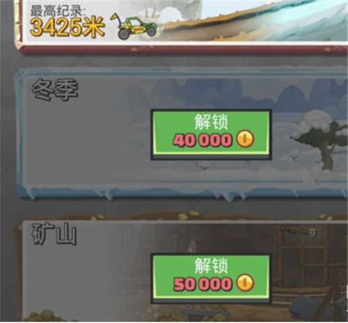 首先你要选择你想玩的关卡地图,除了初始地图外,其他地图也是需要使用金币解锁的,而且这些地图都有各自的特色,比如在月球场景中你将体验到失重感,雪地中你的轮胎则容易打滑。