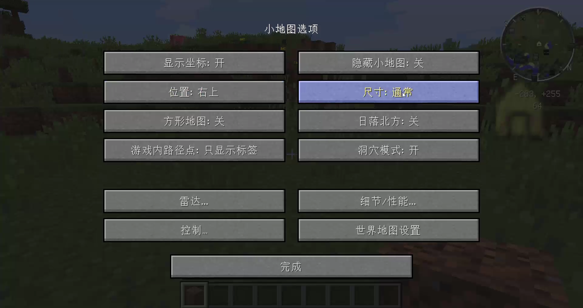 显示坐标:是否在小地图下方显示当前坐标,这个功能还是挺有用的,特别是挖矿的时候,可以知道你当前的高度,然后可以根据高度来找相应的矿石。