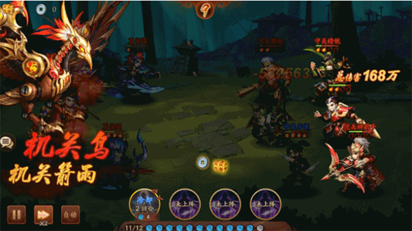 相比其他的神兽来说机关鸟的技能触发方式就比较简单了,只要我们击杀了一名敌方武将就可以发动机关鸟的技能,技能发动之后可以对后排的脆皮武将造成高额的伤害,在打完了伤害之后还有一定的概率附加灼烧状态。虽然每场只能触发一次,但已经可以大幅增强阵容的伤害。