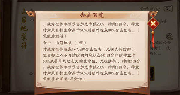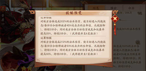 特点:后排伤害及灼烧,敌方阵亡任意一名武将触发,七星可达484%的后排伤害并给予灼烧伤害(90%武将平均攻击力)