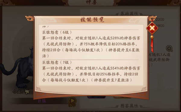 1.敌方武将阵亡时,对敌方后排造成大量神兽伤害(无视武将防御)