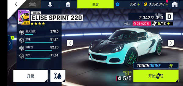 小莲花220,我认为这车平民最神车,仅仅依靠强大的加速就可以完爆主流车莲花220简直就是平民中的神车了,速度达到了逆天的82,操控性和氮气水平都是S级别。加速这么快可以使你拥有赢在起跑线上的能力。不论是加速还是操控性还是氮气,都可以媲美S级车。只可惜最大速度只有270,成为莲花220的硬伤。在使小莲花跑多人时,几乎都是第一个冲出去的,让你直接体验一马当先的快感。使用氮气时尽量别开氮气爆发,因为加速快导致氮气流失很大,浪费的多。跑直道时切换成完美氮气或者普通氮气可以一直喷下去,基本上从头喷到结束。