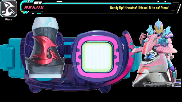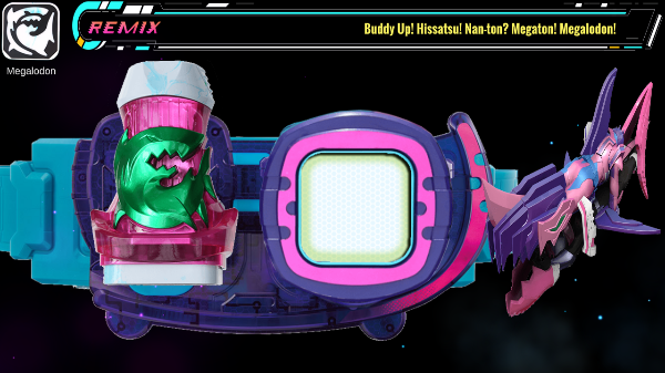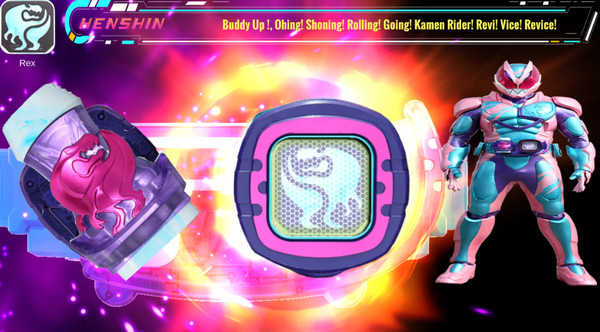 变身音效为“Buddy up!Ohing!Shortening!Rolling!Going!Kamen Rider!Rivi!Vice!Revice!”