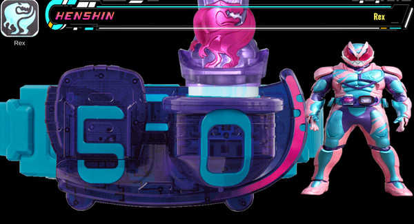 5、再次点击一下Rex印章,随着主题变身音乐的想起,盖好印章,开始变身为利维斯假面骑士。