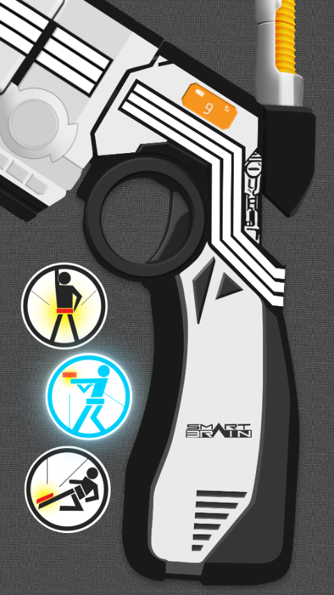 4、这个骑士是用腰带枪变身的,首先点击第一个按钮,组装手枪,点击第二个按钮进入变身的白热化阶段,这时扣动扳机。