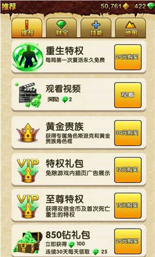 8、角色可以利用金币获得更多的技能并且提升技能等级,等级可以增加技能的时间和效果;