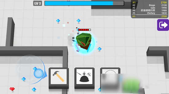 初始武器是激光,这个要和那把光剑区分开来。虽然激光射程实在有限,在游戏刚开始还是可以虐新手的,自带穿墙福利,后期升级[激光束][射程][三角射击][弯道轨迹]等搭配风骚走位也还可以玩玩。