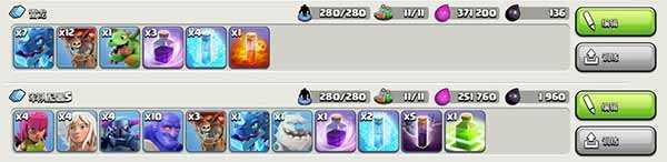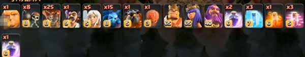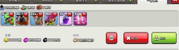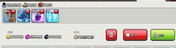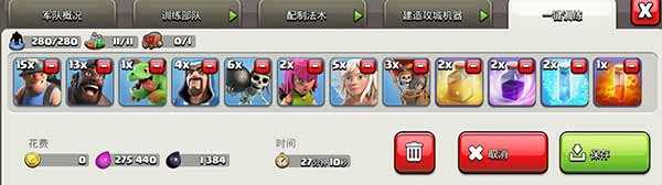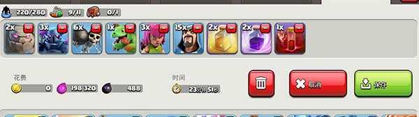 狂暴法术3个,天使带5个,这些是配合天女的标配。冰冻法术3个,加速法术3个,这2个就不用多说了,然后带1只狗。有些首领会问,1只够吗,毕竟还剩下2个防空了,其实1只狗是足够的,首先我们本身带了攻城球,它除了能进攻防御塔,还可以储存气球,我们本身还带了25只气球了,这样相加到一起,气球的数量是很可观的!所以带一只狗不如让气球满天下!本身满级的气球血量也是很高的,而且在永王的加持下,这些气球血量又会提升一个档次。所以单头的防空火箭想打下这些气球,需要很久很久,这些时间足够气球飞到防空上面来摧毁它了。