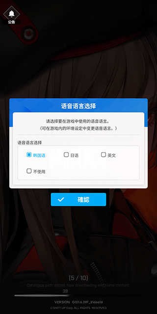 3、其次就是选择游戏内的语音语言了,当然在后期也可以进入游戏后根据玩家的个人喜好进行更换。
