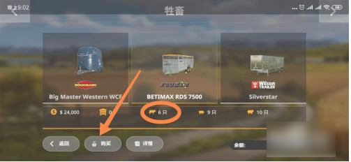 2、其次,玩家需要前往农场商店,找到拖拉机的货架并选择所需的型号和规格。