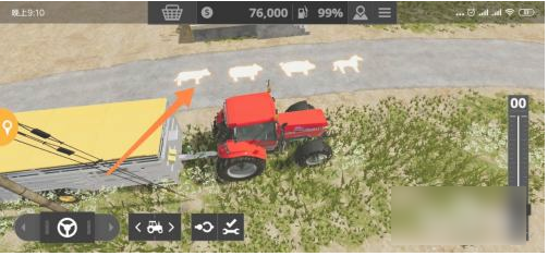 5、将车开到地面标有牛羊猪马白色图标里,停住。