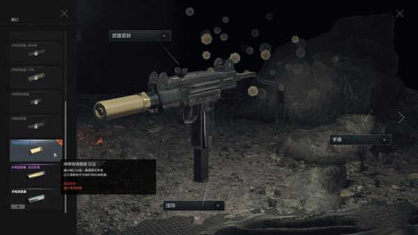 装上消音器的UZI扫射手感变得非常舒服,消音器也能减小开火时发出的噪音,在偷袭时能有效的隐蔽自己。