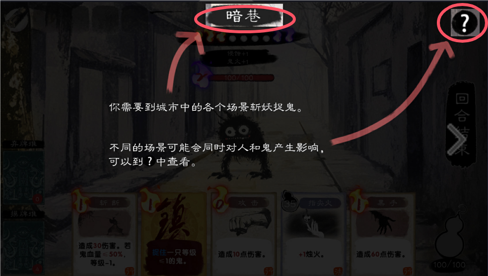 4、你在最初会获得3点希望之火这是这座城市仅存的希望。每场战斗后,剩余的个会继承到下一场战斗,一些强力卡牌和鬼的行动可能会消耗希望之火,你可以提前探查到鬼本回合的行动意图;