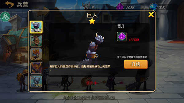 1、巨人:攻击力强,攻击速度慢,移动速度慢,防御力高。