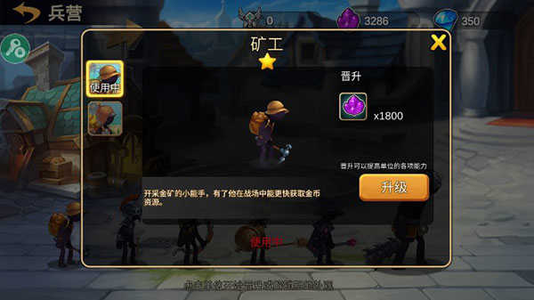 6、矿工:开采金矿的小能手,有了他在战场中能更快的获取金币资源。