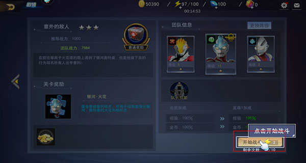 3、第二种方式则是通过装备副本获取,也就是宇宙警备队。在奥特曼宇宙英雄内购破解版中宇宙警备队的副本难度非常大,玩家除非战斗力碾压。不然一个人很难通关;