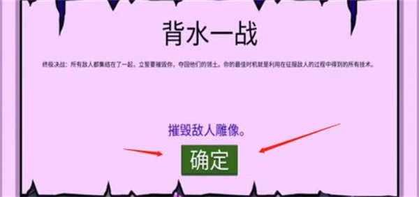 升级:矛士头盔,法师杖第十一关:冰冷山区,对方基本上是满级战斗单位,前期6矿工大力发展经济,先养四排剑士后期开始养巨人(击退)(记得备上淘金热*2)升级:矛士盾,剑士之剑第十二关:最终对战,这时敌方用的是熔岩皮肤,十分强悍,前期两排剑士一排弓箭手,7个矿工发展经济(备上淘金热*3)后期养两巨人开路,两排弓箭手掩护,四排剑士拆雕像(备好剑士狂怒*2,一个拆雕像,一个防援兵),敌方雕像没血后会变出一个巨人(银甲大帝),这时赶紧撤退(防守模式),不要跟他硬刚,因为他伤害非常高。这时拿出对付巨人的套路,不过千万不要皮。打败他之后就会按照剧情发展,跟着剧情走就好了。升级:通关了随便升