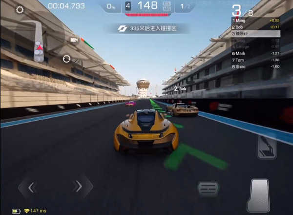 这里有个起步小技巧,在倒计时开始时,立刻按下油门键控制指针,使其来到白色区域附近,这样就不会手忙脚乱,轻松完成「完美起步」。