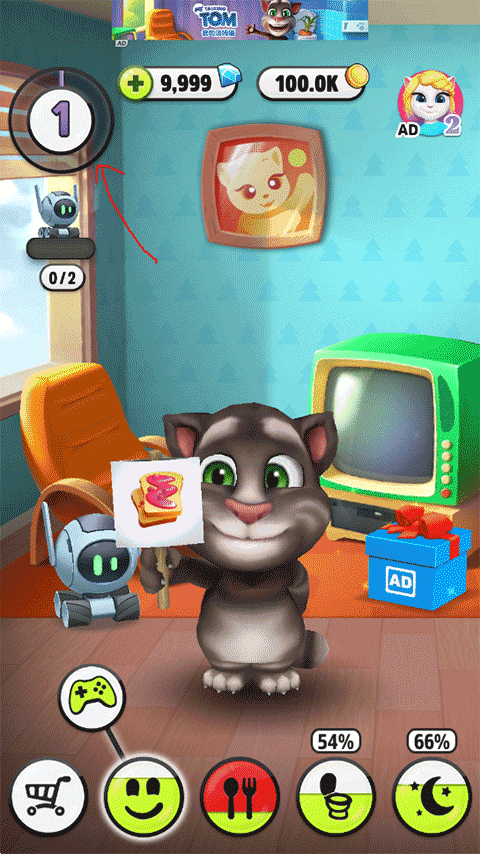 1、进入游戏内,点击打开我的汤姆猫、然后点击左上方的数字图标。