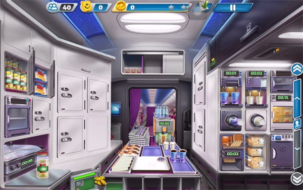 5、游戏的玩法机制采用了关卡的形式,当我们完成一个关卡后就会获得不同的奖励,这些金币奖励可以用于升级机舱内的各种设施,设备的升级不仅可以提高收入,还可以缩短顾客们的等待制作的时间