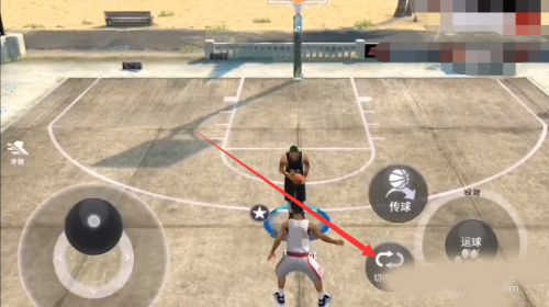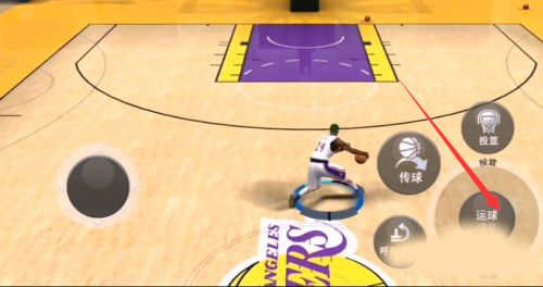 3、如图所示滑动【运球摇杆】控制运球方向;