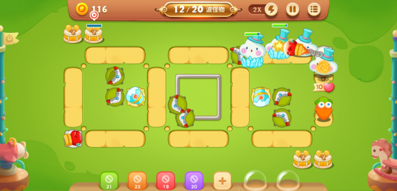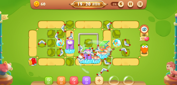 游乐园大作战第4关的难点主要在第19波的加速怪和第20波的大云朵