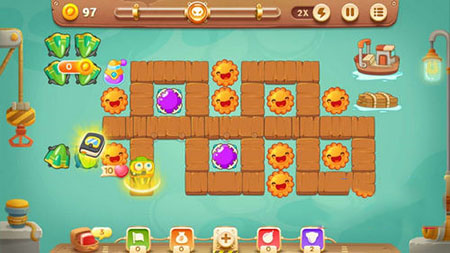 同理把右上角的钱箱也拆了 这时候就会有不少的经济安稳度过前期 优先把隐藏的雪球打出来 再找机会清理其余障碍物